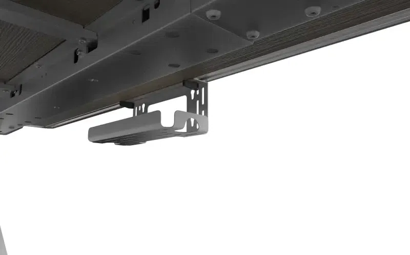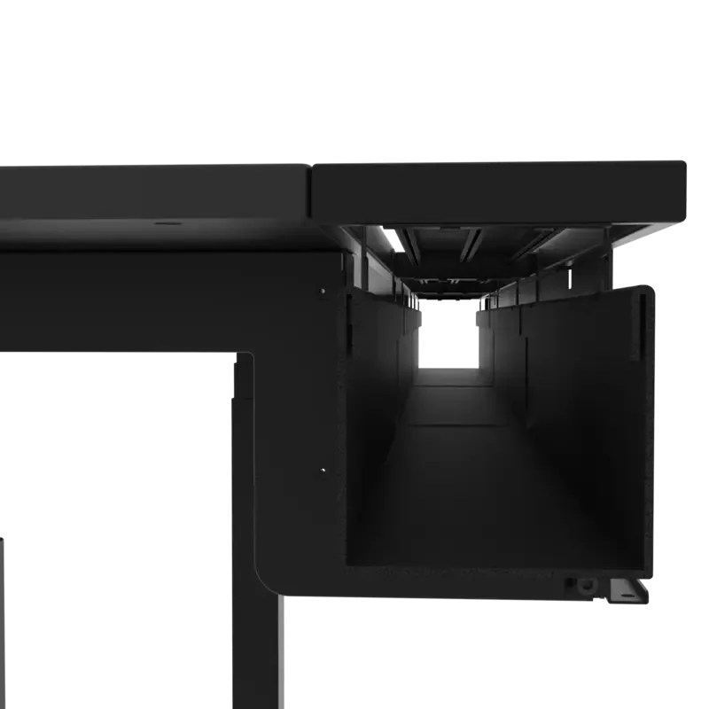 Desk Frame with integrated cable management. A spacious fiber cable tray runs seamlessly beneath the desk, providing ample room to store power strips, adapters, and cords out of sight.
