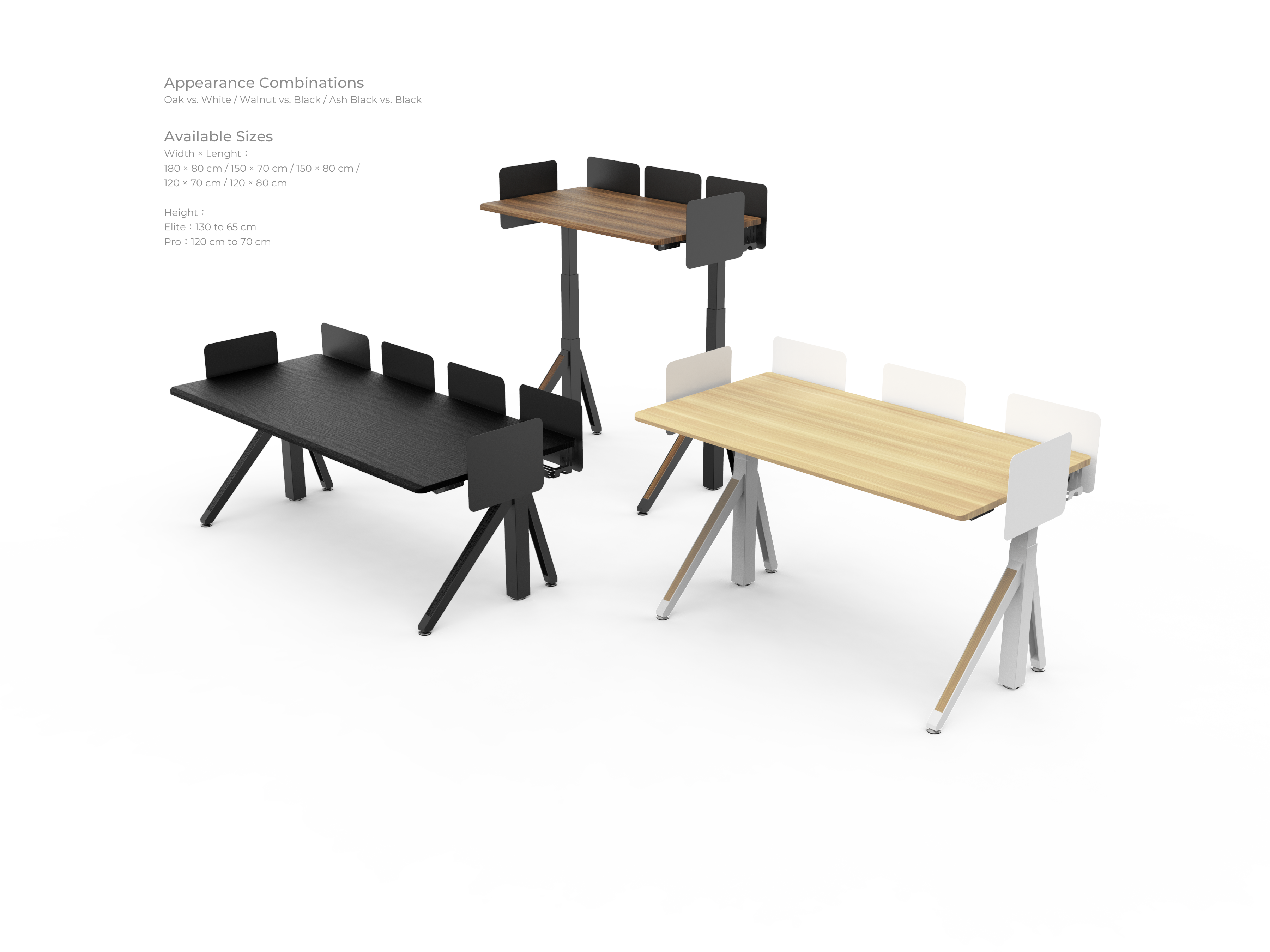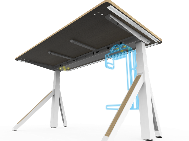 三節式腳柱提供 65–130cm 升降範圍,靈活對應各種姿勢與空間情境。隱藏式雙馬達驅動,運轉低頻靜音,內建防夾裝置遇阻即停,全方位守護人身與物品安全。