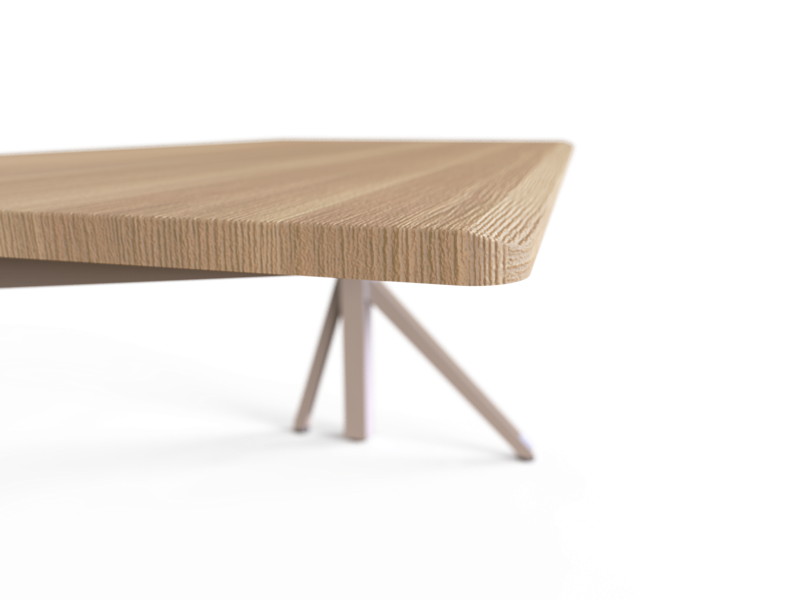桌板邊緣以細膩切削手法,打造 23° 向內斜削的立體輪廓,讓桌面視覺更顯輕盈俐落的同時,長時間使用也舒適,無懼手臂壓痕,貼近使用者需求。