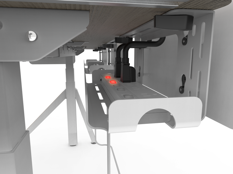特殊 U 型桌架設計,提供更穩定的支撐力,不僅較一般桌架穩固,同時能讓桌下走線不外露,線材整齊收納於 U 型結構的桌架中,讓桌面桌下維持俐落有序。